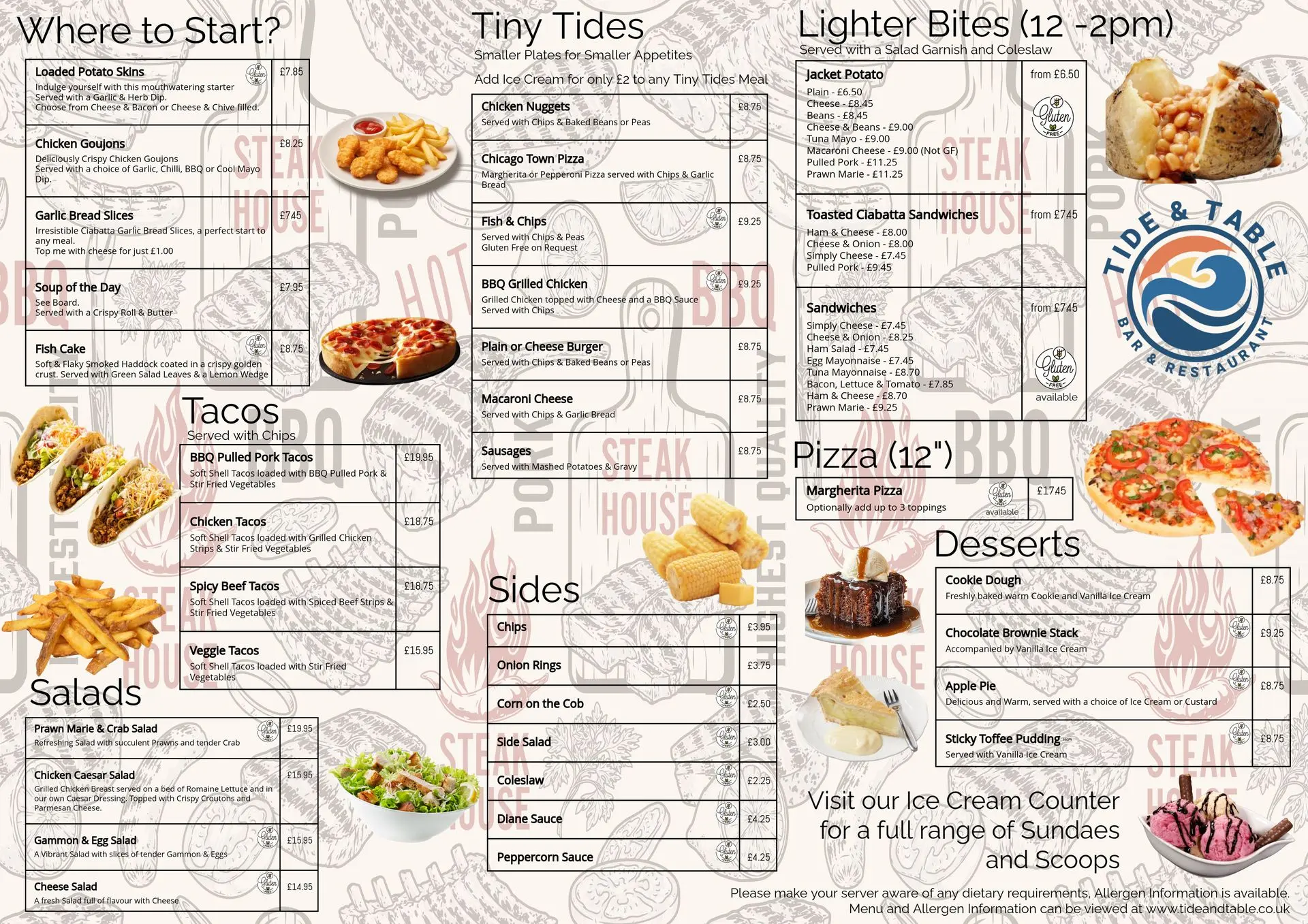 Our ever popular Tides Takeaway operates daily from 4pm til 9:30pm. Place your order for collection. Please note that Tides Takeaway can be very busy and extended wait times are usually expected.
