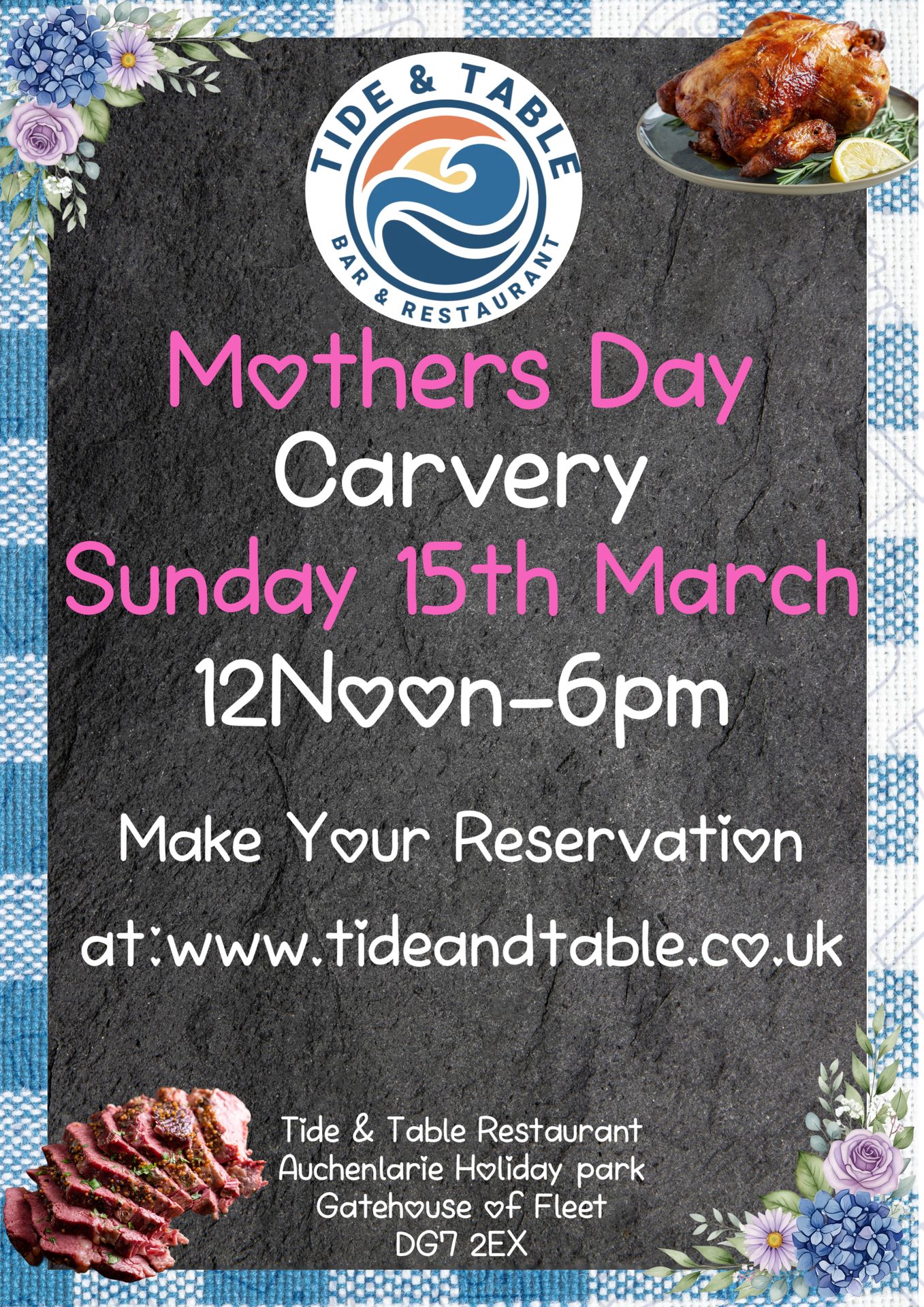 Join us this mothers day for a traditional Sunday Carvery Dinner from 12noon to 6pm